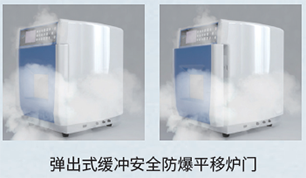 弹出式缓冲安全防爆平移炉门,让操作更放心更安全。炉门双重锁定自检系统,电子和机械双重设计,操作简单。